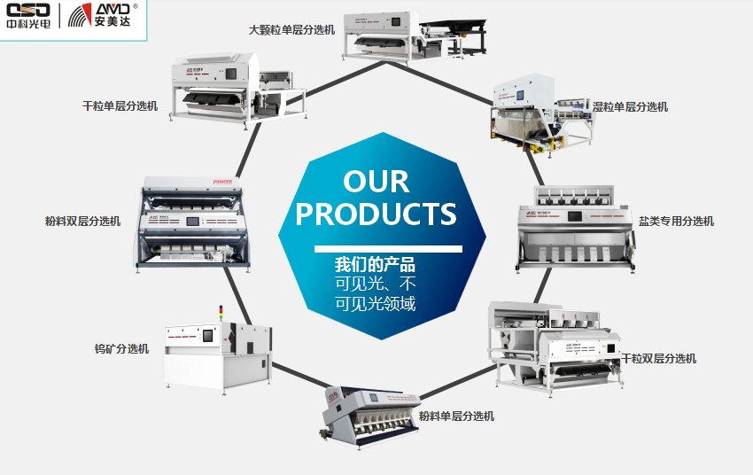 一、公司简介安徽中科光电色选机械有限公司成立于2002年,2015年与合锻智能重组A股上市,是一家专业从事智能色选设备研发、制造、销售为一体的国家高科技企业。公司位于中国合肥高新技术开发区柏堰科技园,占地面积15万平方米,总投?.5亿元人民币,拥有现代化的生产车间22000平方米、科研楼25000平方米。历经近二十年的发展,已成为拥员员工?50多人,销售收入?亿元的大型智能分选设备生产基地,