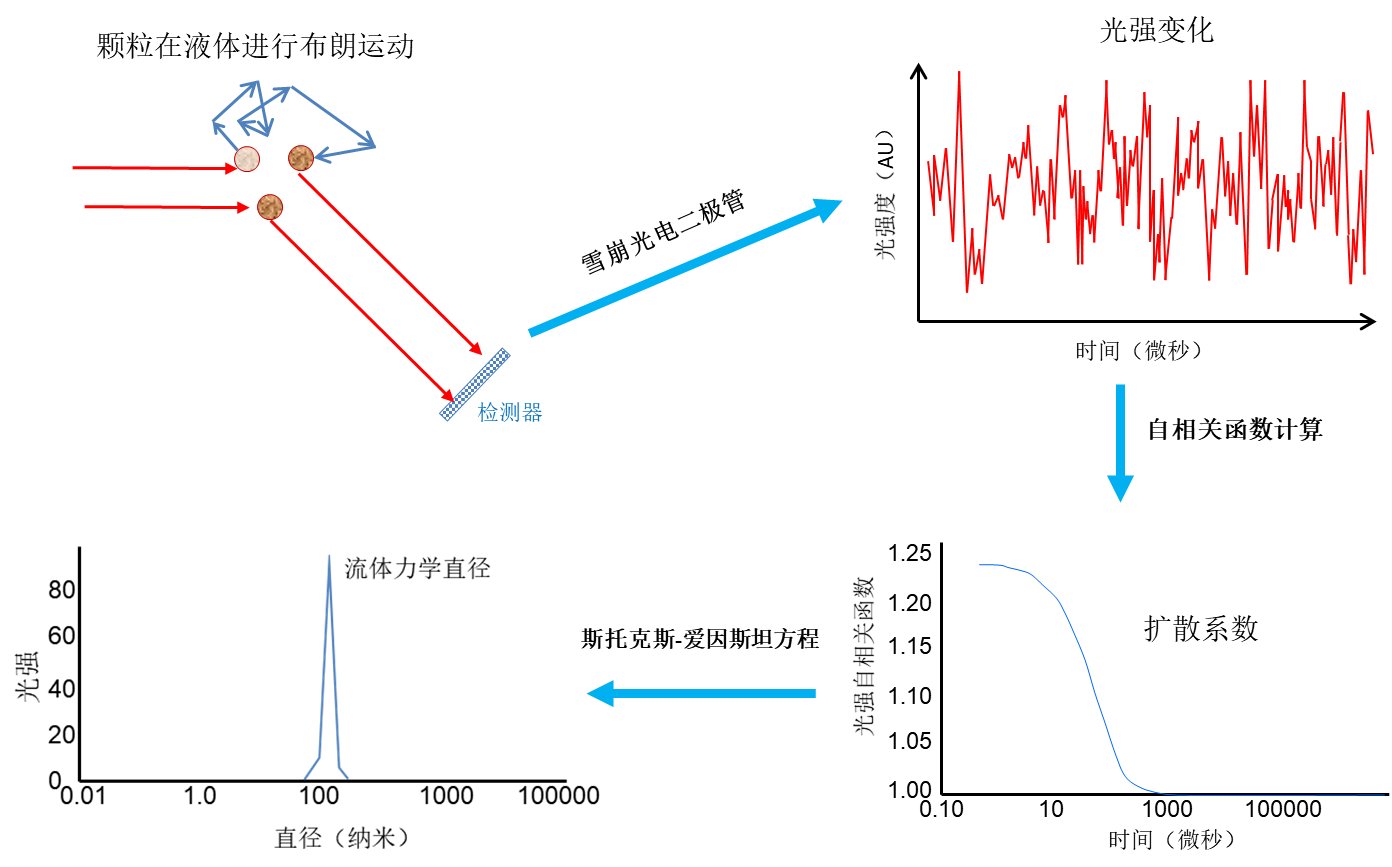 在溶液中悬浮的颗粒由于无规则运动会发生布朗运动。一般颗粒越小,运动速度越快,动态光散射技术利用悬浮颗粒在溶剂体系中做布朗运动的原理,通过检测颗粒的扩散速度,从而利用斯托克?爱因斯坦方程计算出颗粒的大小和粒度分布、/p>