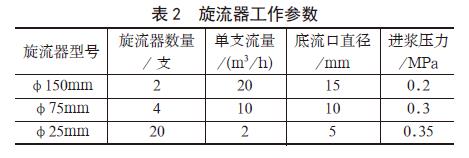 2.3 水力旋流器工作参数水力旋流器作为一种高效的细微粒矿物分级、脱泥、浓缩设备,广泛用于有色金属选矿、陶瓷、非金属矿选矿等领域,它具有结构简单,产能大,占地小,效率高,运行成本低的优点[6]。本次试验采用的旋流器工作参数见?、/p>
