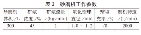 砂磨机是目前物料适应性最广、最为先进、效率最高的湿法研磨设备,根据使用性能大体可分为卧式砂磨机、篮式砂磨机、立式砂磨机等[7]。砂磨机与球磨机、辊磨机、胶体磨等研磨设备相比较,具有生产效率高、连续性强、成本低、产品细度高等优点。本次试验采用的卧式砂磨机工作参数见?,采用氧化锆球做研磨介质、/p>