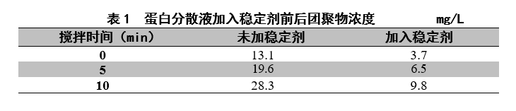? 蛋白分散液加入稳定剂前后团聚物浓?nbsp;