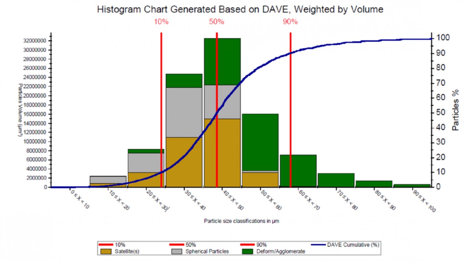 Ti-6Al-4V 粉末ä¸çƒå½¢é¢—ç²’ã€å«æ˜Ÿçƒé¢—ç²’å’Œå˜å½¢é¢—粒的体积分布