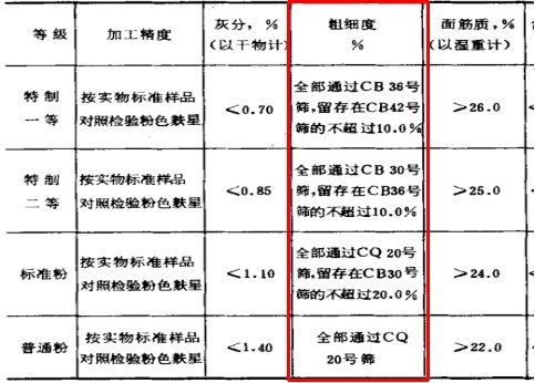 面粉是五大主粮水稻、小麦、玉米、大豆和土豆之一,是全球几十亿人赖以生存的食品之一。面粉粒度(又称面粉粗细度)是面粉的一个重要物理参数,在面粉标准GB1355-1986中粒度的测量的方法是筛分法,如特制一等粉要求粗细度为CB36号筛?1目,160微米)全通过,CB42号筛?07目,137微米)筛上留存不超过10%;特质二等粉要求CB30?6目,200μm)筛全部通过,CB36?1目,160μm)筛留存小于10%;由下图1可见,面粉标准中的粗细度指标是一个很粗略指标,仅对粗细度上限做了规定,中间和细端都没有任何规定、/p>