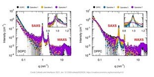此外+/span>SAXS是表征双层厚度的首选技术,因为它具有纳米分辨率,并且因为它提供了来?/span>~ 1立方毫米样本体积的统计相关信息。它还提供了对膜柔韧性和活性成分掺入的深入了解、/span>[1,2]与许多其他技术相比,例如冷冻电子显微镛/span>(CryoEM),样品可以在接近自然状态下进行测量,准确地代表自然状态、/span>[4]重要的是+/span>SAXS允许研究上述参数作为温度和其他环境参数的函数、/span>[1,2,4-7]