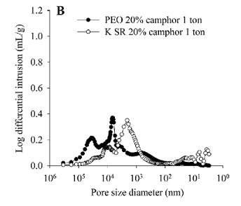 通过压汞法(AutoPore IV 9500)可以获得片的内部孔道信息,判断片的机械强度以及渗透液体的能力。聚合物使得片剂产生弹性行为,比较进、退汞曲线验证该行为、/span>