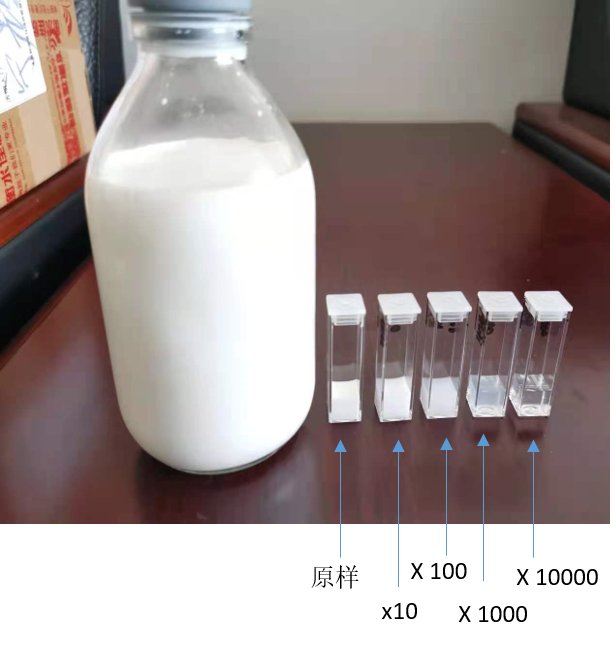 脂肪乳原液浓度为20% w/v,由于脂肪乳的配方中没有发现盐类,所以使用蒸馏水将脂肪乳样品进行稀释,配置成不同浓度的样品、/p>