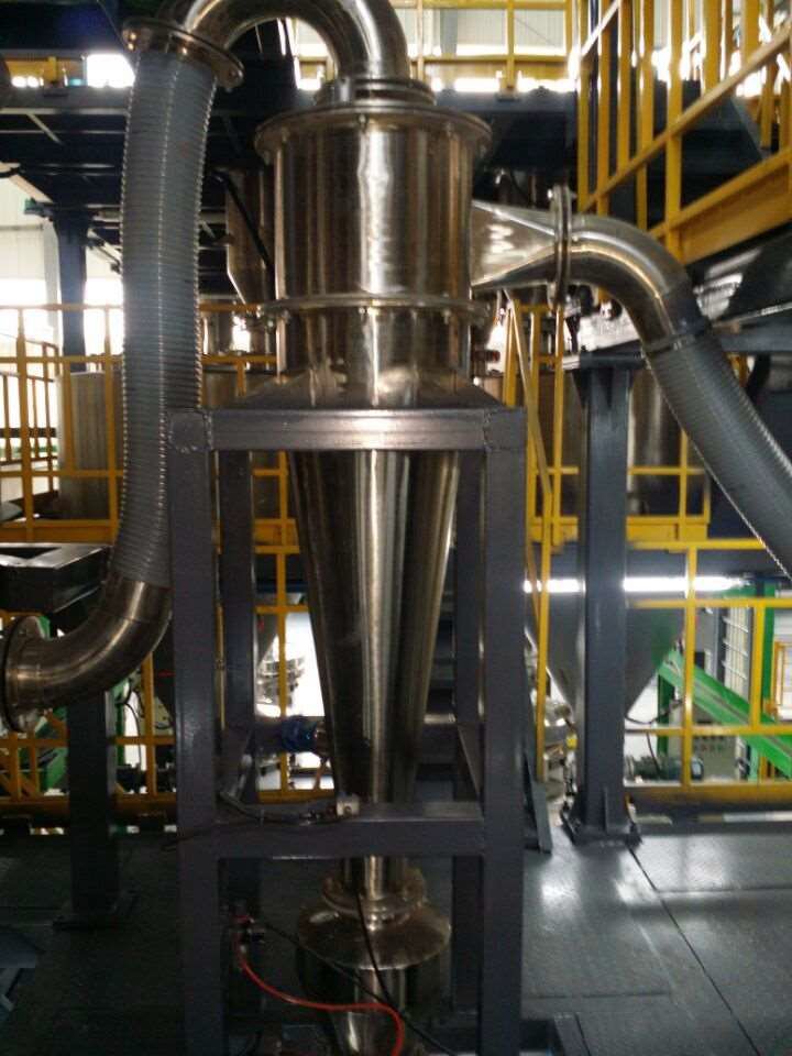 对分级后的产品进行气固分离,收集。大部分物料通过旋风分离器进行收集,尾粉进入布袋收尘器后气固分离,通过引风排出、/span>