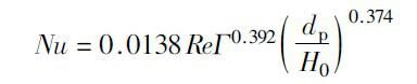 α———VFB中热流体与物料颗粒的对流给热系数,Kw/?nbsp;m?·℃):br/> α———静止床层单位体积物料的总表面积,m平方/ m立方、br/> 式?-38)中取热体进出床层的平均温度作为床层中热流体的温度、br/> 对于α有许多文献研究证实振动可强化气" 固之间的换热强度。现给出实验关联式: