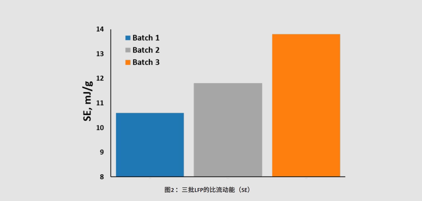 2 显示了三个批次的 SE 值。批 1 较低的值说明颗粒间机械咬合和摩擦作用减少。表明颗粒不易团聚,可以更均匀地分散。生产经验说明批 1 获得的浆料更均匀,从而生产得到更高收率的电极。批 2 和批 3 SE 值更高,在生产中表现不一致,发生故障导致系统停机和规格不符、/span>
