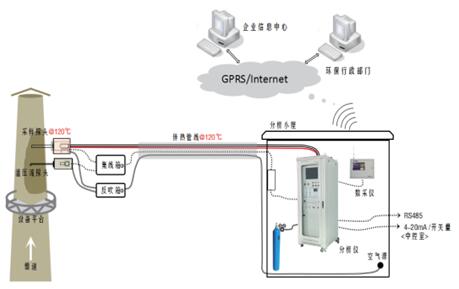 采样探头安装于企业废气排口,排口被测废气被负压抽泵抽取进入采样探头探杆(不加热),经过陶瓷滤芯进入伴热管线(伴热温度可设置),样气在伴热管中继续传输至预处理系统,在预处理系统经过二级过滤和分流后按照一定流量送至在线气相色谱仪(GC-FID)。在线气相色谱仪控制内置自动取样平面十通阀和定量环系统叕span style="box-sizing: border-box;line-height: 25px">1mL的被测样气,借助载气送入色谱柱分离和FID做定性、定量分析。分析结果通过工控机保存,并和排气筒监测排放参数一起通过数采仪送至环保监控平台、/p>