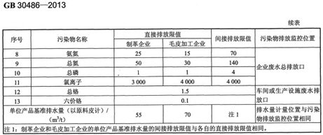 国家针对皮革工业重金属的主要污染状况,已经颁布了《制革及皮毛加工工业水污染物排放标准》(GB30486-2013)、/p>
