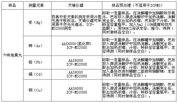 天瑞仪器参考《中华人民共和国药典》,采用原子吸收光谱仪(AAS6000;AAS8000)、原子荧光光谱仪(AFS200系列)、电感耦合等离子体质谱仪(ICP-MS2000),对六味地黄丸中镉、铅、铜、砷、砷、汞等重金属的测定进行研究,测试结果准确度高,重复性好、/p>