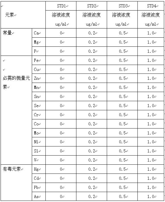 样品处理:精确称取均匀样品干样0.5?g,湿??g,饮料等液体样品3?g?50mL高型烧杯中,?0?0mL混合酸(硝酸与高氯酸比为4?)消化液,上盖表皿。置于电热板上加热消化。如消化不完全,再补加几毫升混合酸消化液,继续加热消化,直至无色透明为止。加几毫升去离子水,加热以除去多余的硝酸。待烧杯中的液体接近2?mL时,取下冷却。用去离子水洗并转移?0mL刻度试管中,定容至刻度、/span>