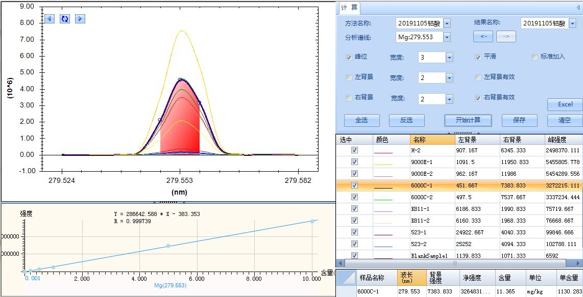 入射功率1150W,频?7.12MHz ,观测方式为轴向观测,等离子气流量:14L/min,辅助气流量:0.8L/min,雾化气流量?.7L/min,蠕动泵转速:2.0mL/min,积分时?5s,重??取平均值、/span>