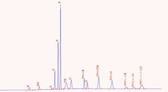 标准PAHs(纯度大?6.0%)的色谱图: