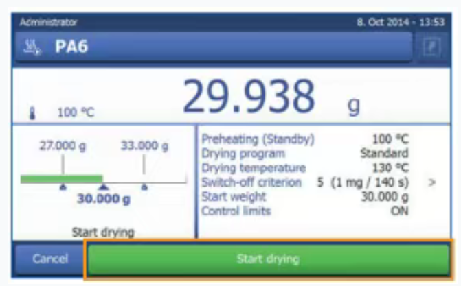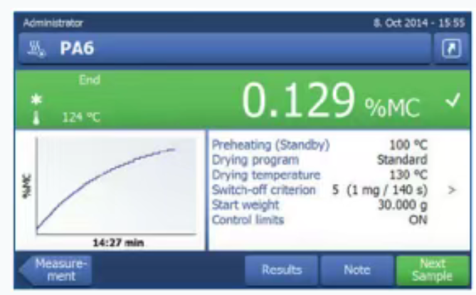使用HX204测定PA6塑料粒子的水分含量结果为0.129%,符合加工工艺中建议的最大极限?.2% 因此,无需再对塑料粒子进行干燥,即可启动注塑工艺、/p>