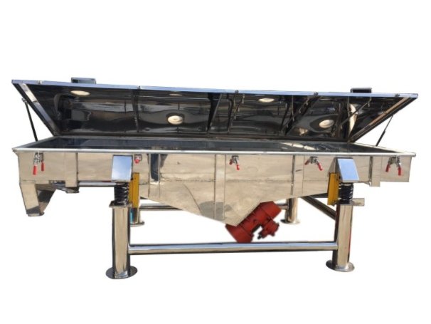 直线振动筛采用双振动电机驱动,当两台振动电机做同步、反向旋转时,其偏心块所产生的激振力在平行于电机轴线的方向相互抵消,在垂直于电机轴的方向叠为一合力,因此筛机的运动轨迹 一直线。其两电机轴相对筛面有一倾角,在激振力和物料自重力的合力作用下,物料在筛面上被抛起跳跃式向前作直线运动,从而达到对物料进行筛选和分级的目 的。可用于流水线中实现自动化作业。具有能耗低、效率高、结构简单、易维修、全封闭结构无粉尘溢散的特点。筛分目?00目,可筛分出7种不同粒度的 物料、/p>