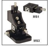 MS1(/M)系列位移台可实现一轴的移动,终端配有调节螺丝。可通过位移台顶部的五个8-32(M4)螺纹孔安装元件。位移台可利用位于底面的8-32(M4)螺纹孔安装在MS101底板?1/2英寸接杆上。另外,位移台顶部有两个通孔可以用来将一个MS1位移台与另一个相连接。每个位移台有两个定位销,用于精确对准XY配置的两个MS1位移台,或将位移台对准下面出售的安装板、/p>