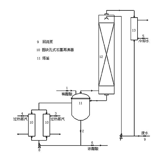 本系统采用先进设计理念,将生产过程产生的15%-25%的稀醋酸浓缩?9%,在此过程中使排放的废水达到环保标准。系统主体设?石墨精馏塔,采用聚四氟乙烯浸渍石墨新型材料制造,整个系统具有工艺先进,操作简便,运行费用少,使用年限长的特点,目前,该系统已在浙江龙盛集团、浙江闰土集团成功运行、/p>
