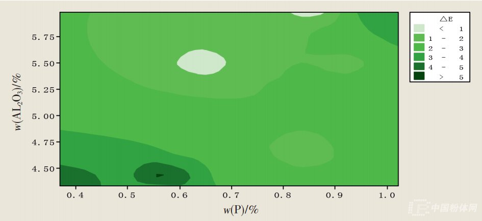 ? 磷铝包膜样品△E与包膜剂含量的等值线国br/>