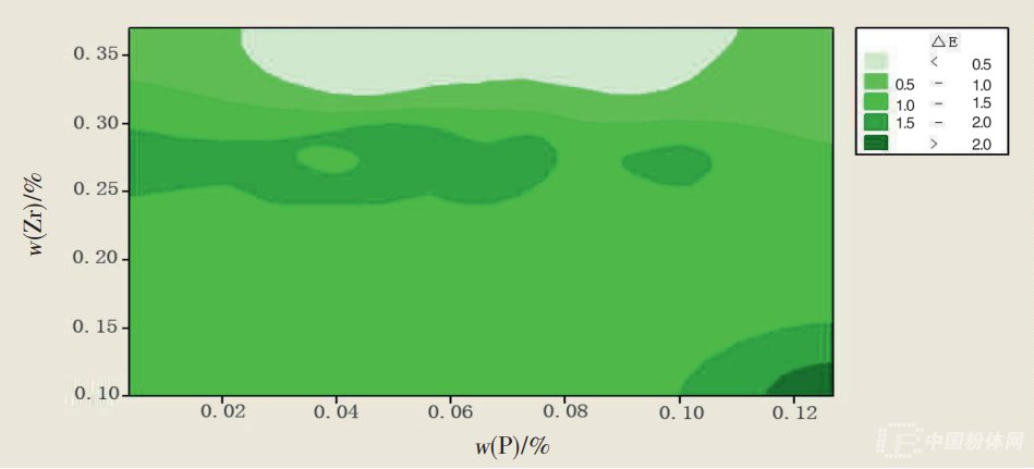 ? 磷锆包膜样品△E与包膜剂含量的等值线国/span>