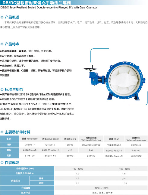DB DC型软密封双偏心手动法兰蝶阀