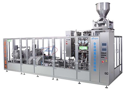 该全自动真空包装系统集结了DT5诱导式翻斗提升机?span style="font-family: 宋体;">CJS2000F四工位电脑秤、VFS5000FS立式充填包装机组、ZB500N2内抽式真空机组以及成品输送机等有机的组合。可根据不同的物料制作出不同外形尺寸的成品。具有包装速度快、密封效果好、密封时间长、外形美观等特点。该机组由于采用内抽式抽真空,产品的真空度比较好。广泛应用于食品、制药、化工等行业的真空包装、/span>