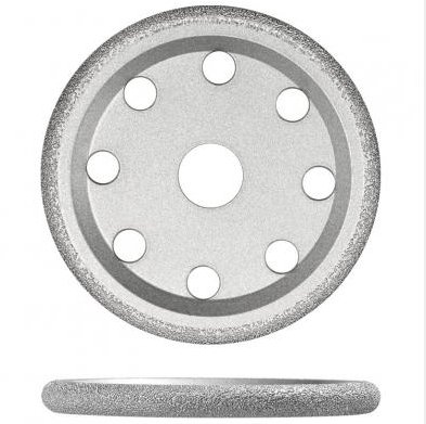 该工具在外周呈圆弧面、V形面及其它形状表面上钎焊金刚石磨料,而且在两侧面靠近圆周处的一定区域内也钎焊金刚石磨料,实现各种形状沟槽面的加工、/span>
