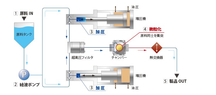在讲原料微粒化的时候,会å‘生混入æ‚质和粒å直径ä¸å‡åŒ€ç‰é˜»ç¢åŽŸæ–™åŠŸèƒ½ç‰¹æ€§çš„é—®é¢˜ã€‚ä¸ºäº†è§£å†³è¿™äº›é—®é¢˜ï¼Œæ¹¿æ³•è¶…é«˜åŽ‹åˆ†æ•£ç³»ç»Ÿä½¿ç²’å之间å‘生斜å‘对撞ã€å†²å‡»ï¼Œå¼€å‘出æ¥ä½¿ä¹‹è¿›è¡Œçº¯ç²’å化的划时代工艺,开拓了一个新的微粒化世界ã€ü/span>