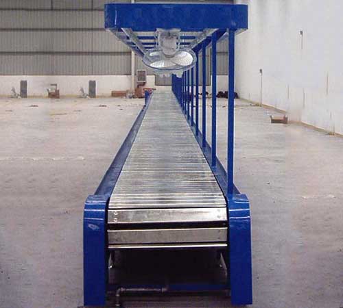 板链输送机适用于形状不规则物品的重载输送。链条选用空心大辊子带附件链条,在两侧同步链条的附件上用板状构件连接使输送方向形成连续的平板,因而运行平稳。该机与链式或辊筒输送机配合使用可实现转角输送、/span>