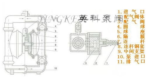 8、耐腐蚀隔膜泵扬程、流量可通过气阀开度实现无级调?气压调节??bar之间)9br/> 9、结构简单、易损件少,该泵结构简单,安装、维修方便,泵输送的介质不会接触到执行机构,联杆等运动部件,不象其他类型的泵因转子、活塞、齿轮、叶片等部件的磨损而使性能逐步下降:br/> 10、气动隔膜泵无须用油润滑,即使空转.对泵也无任何影响,这是隔膜泵**特点、/span>