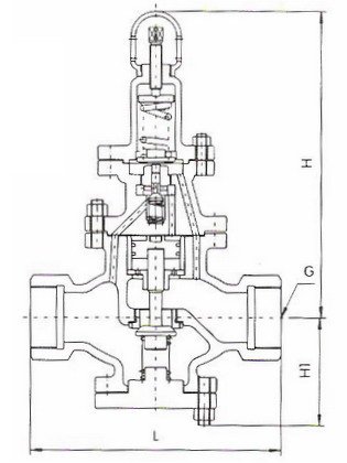 本系列减压阀属于先导活塞式减压阀。由主阀和导阀两部分组成。主阀主要由阀座、主阀盘、活塞、缸套、弹簧等零件组成。导阀主要由阀座、阀瓣、膜片、弹簧、调节弹簧等零件组成。通过调节调节弹簧压力设定出口压力,利用膜片传感出口压力变化,通过导阀启闭驱动活塞调节主阀节流部位过流面积的大小,实现减压稳压功能、br/> 本产品主要用于蒸汽管路,起减压稳压作用、/span>