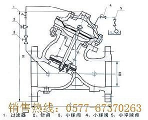 本产品由主阀和调节阀及接管系统组成,阀体采用直流式阀体,主阀控制室为膜片式或活塞式的双控制室结构,控制室比一般水力控制阀增加了一个,增加了对主阀的控制功能,实现了对水泵出口的缓慢开启、全开、缓闭、截止等多功能控制,实现了一个阀门、一次调节对水泵出口的多功能控制、br/> 遥控浮球阀的接管系统采用调节阀控制,通过设定调节阀的开度,可方便实现需要的各项控制参数,如主阀的开启速度、缓闭速度等等、/p>