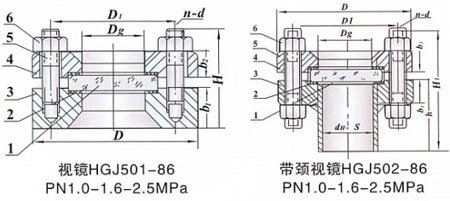 | 名称 | 视镜玻璃 | 衬垫 | 接缘 | 压紧?/td> | 双头螺栓 | 螺母 |